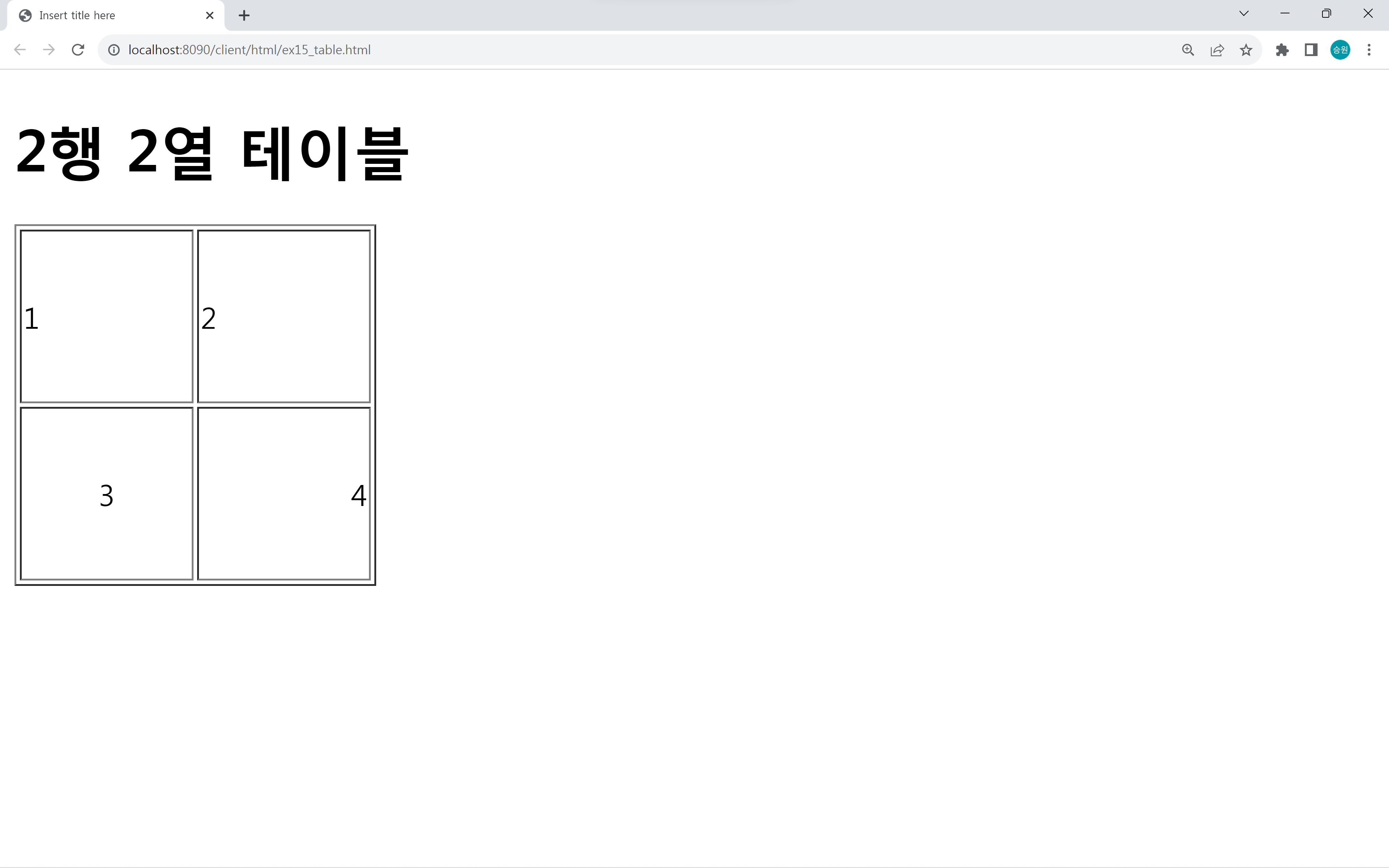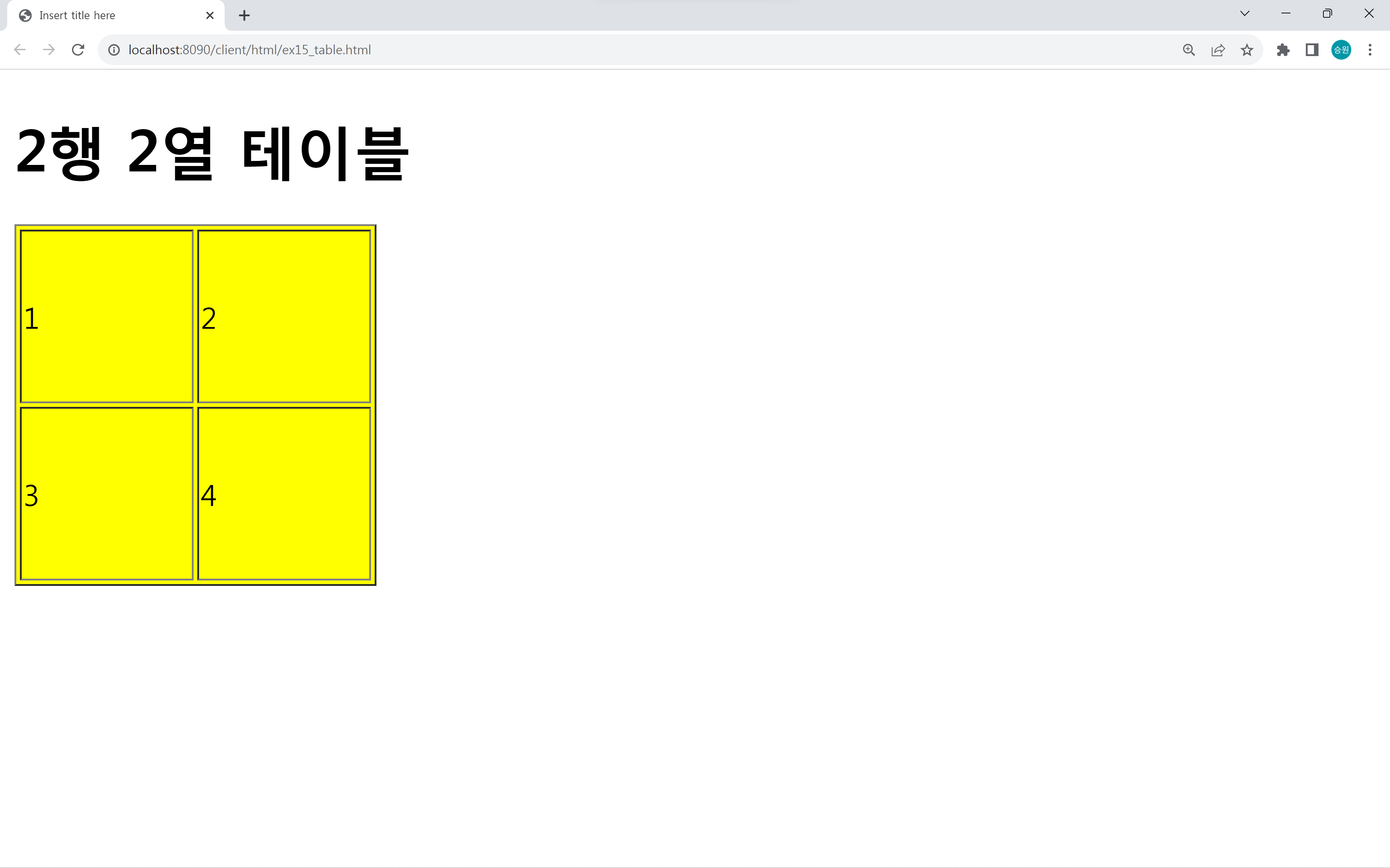 <h1>2행 2열 테이블</h1>