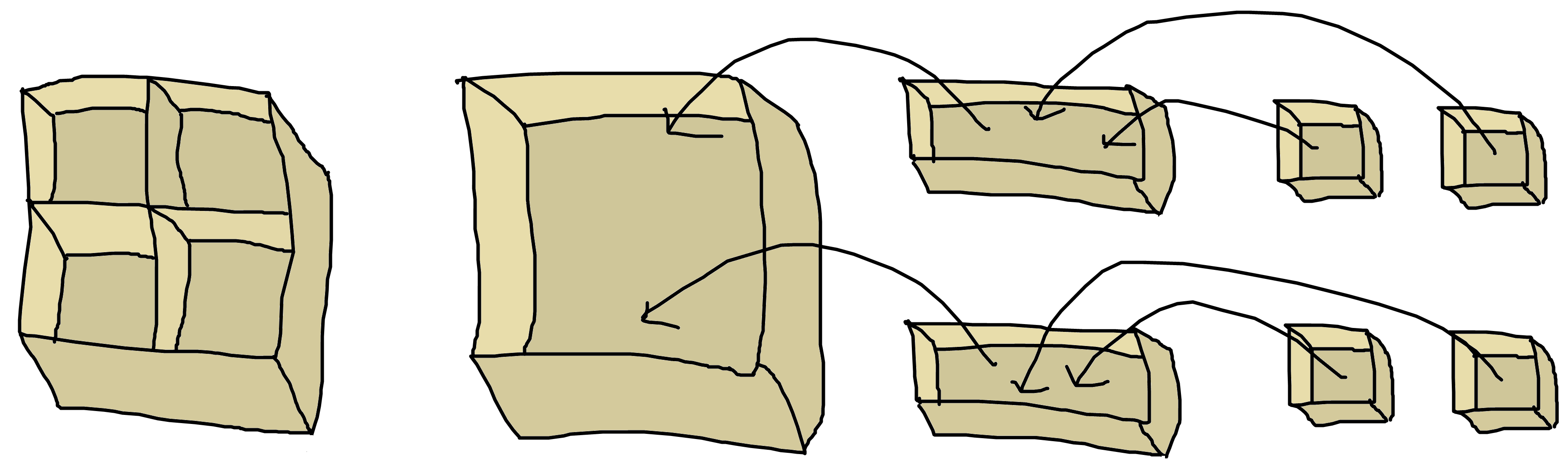 3. 작은 상자를 4개 만들어서 가로가 똑같은 상자에 2개씩 넣는다. (셀의 역할)