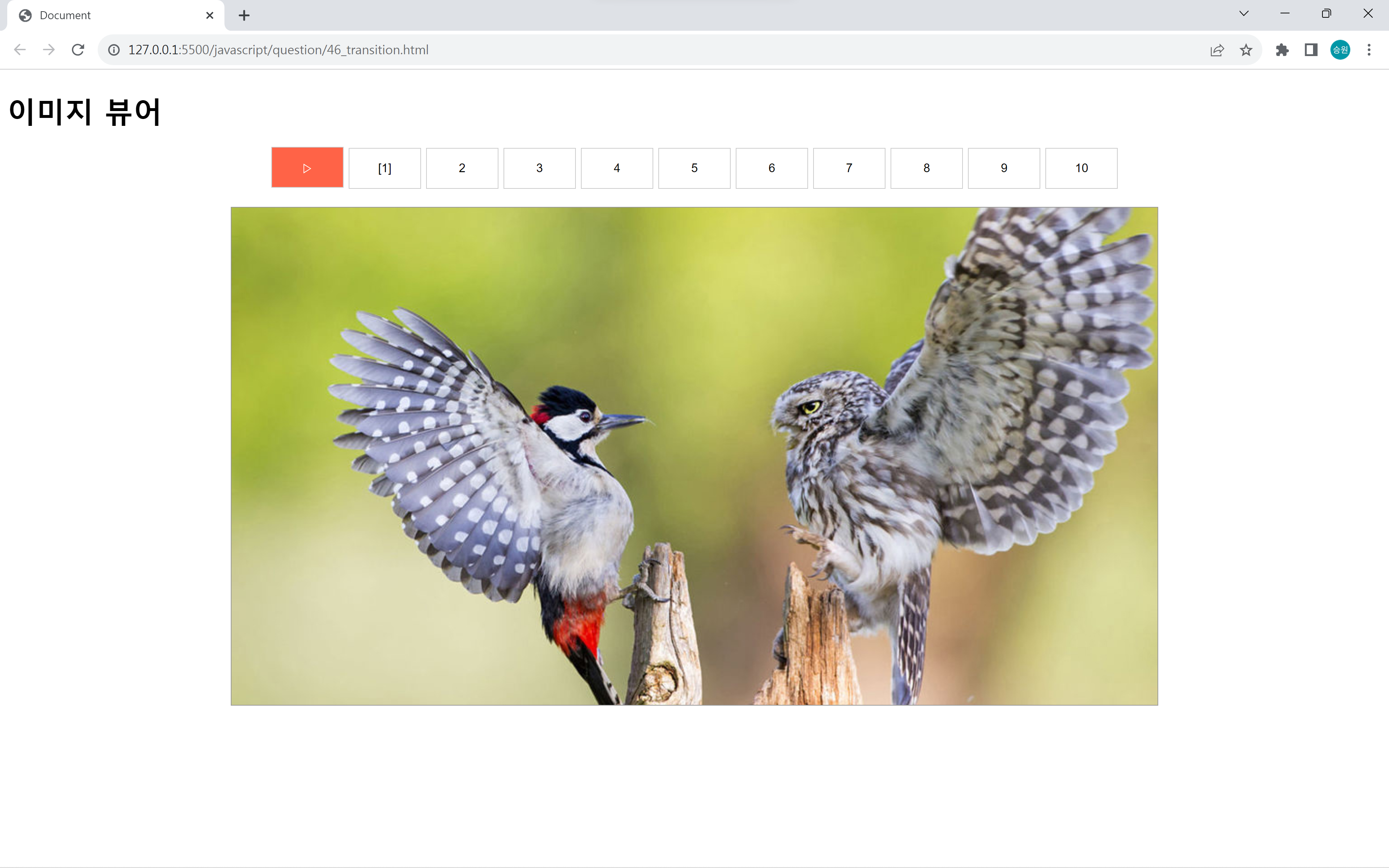 자동 실행 중 특정 버튼을 누르면 타이머는 중단되고 누른 이미지가 출력된다.