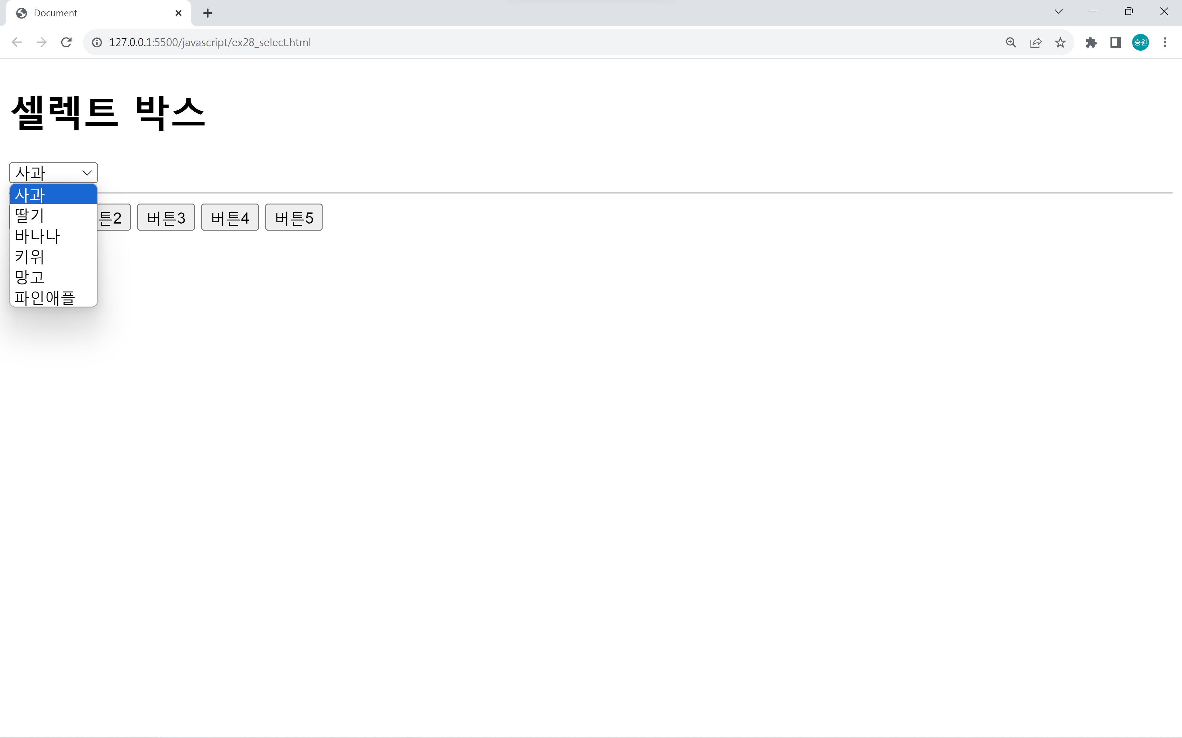 위 코드를 가지고 Select Box에 대해서 알아보도록 하자.