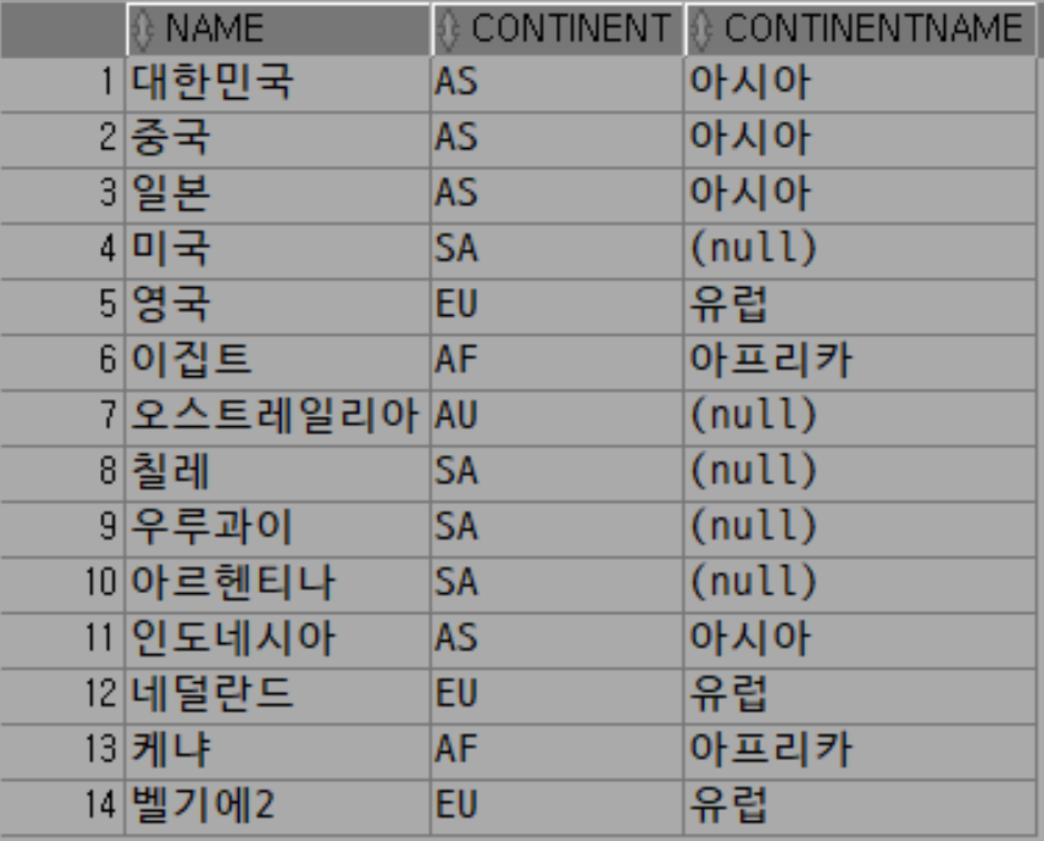 WHEN CONTINENT = 'AS' THEN '아시아'