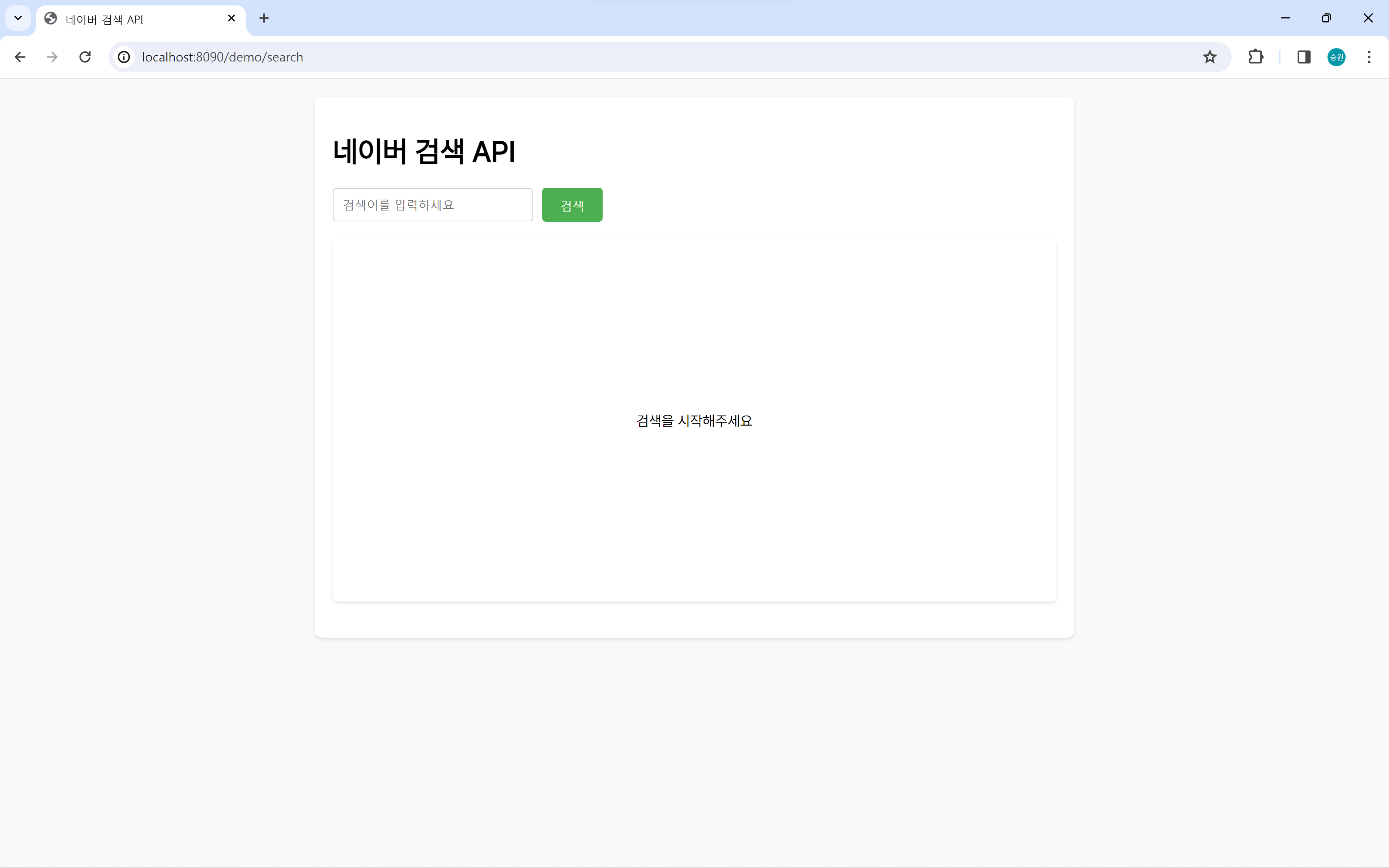 네이버 검색 API를 구현한 첫 화면이다.