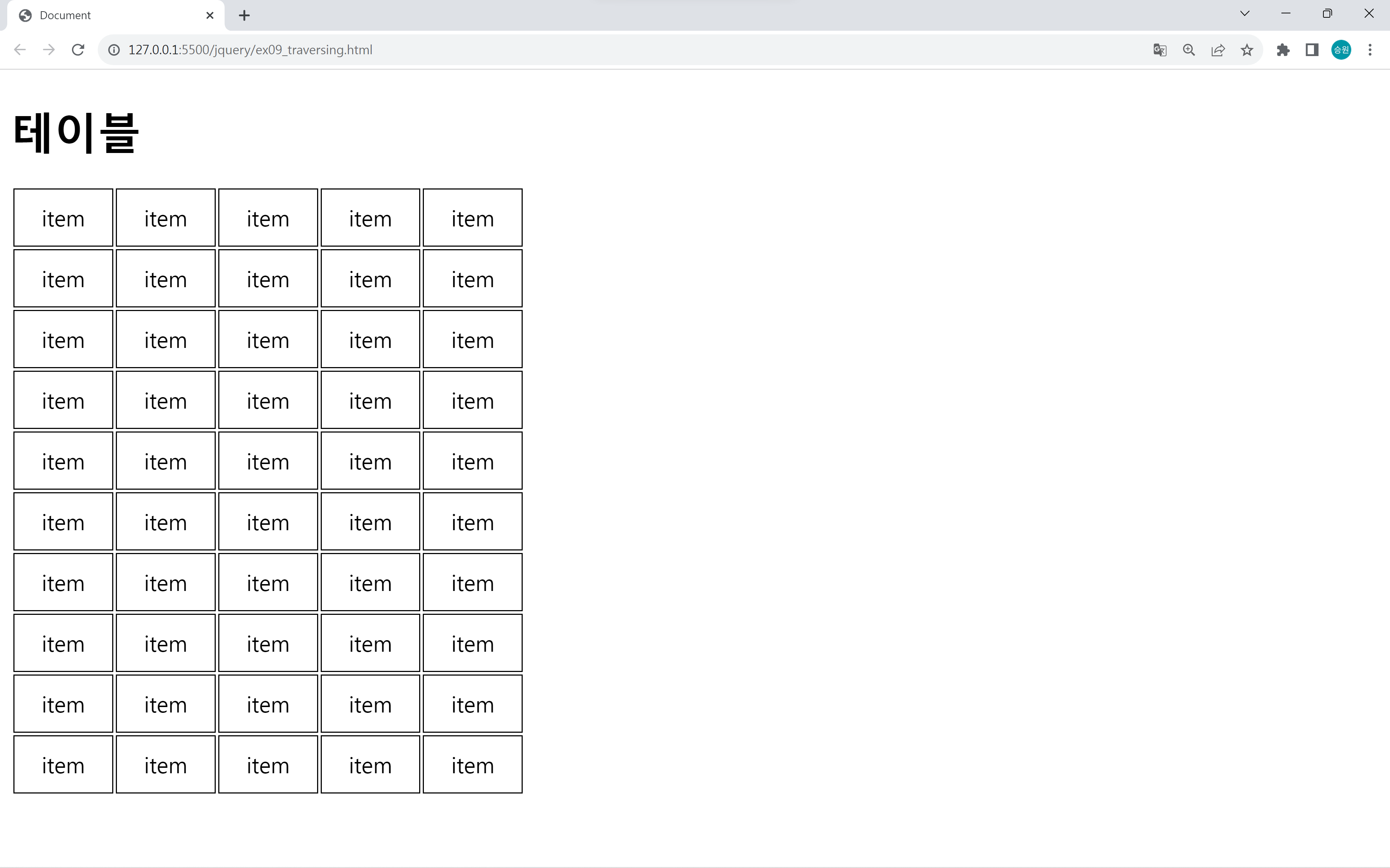 <!-- table#tbl1>tr*10>td{item}*5 -->